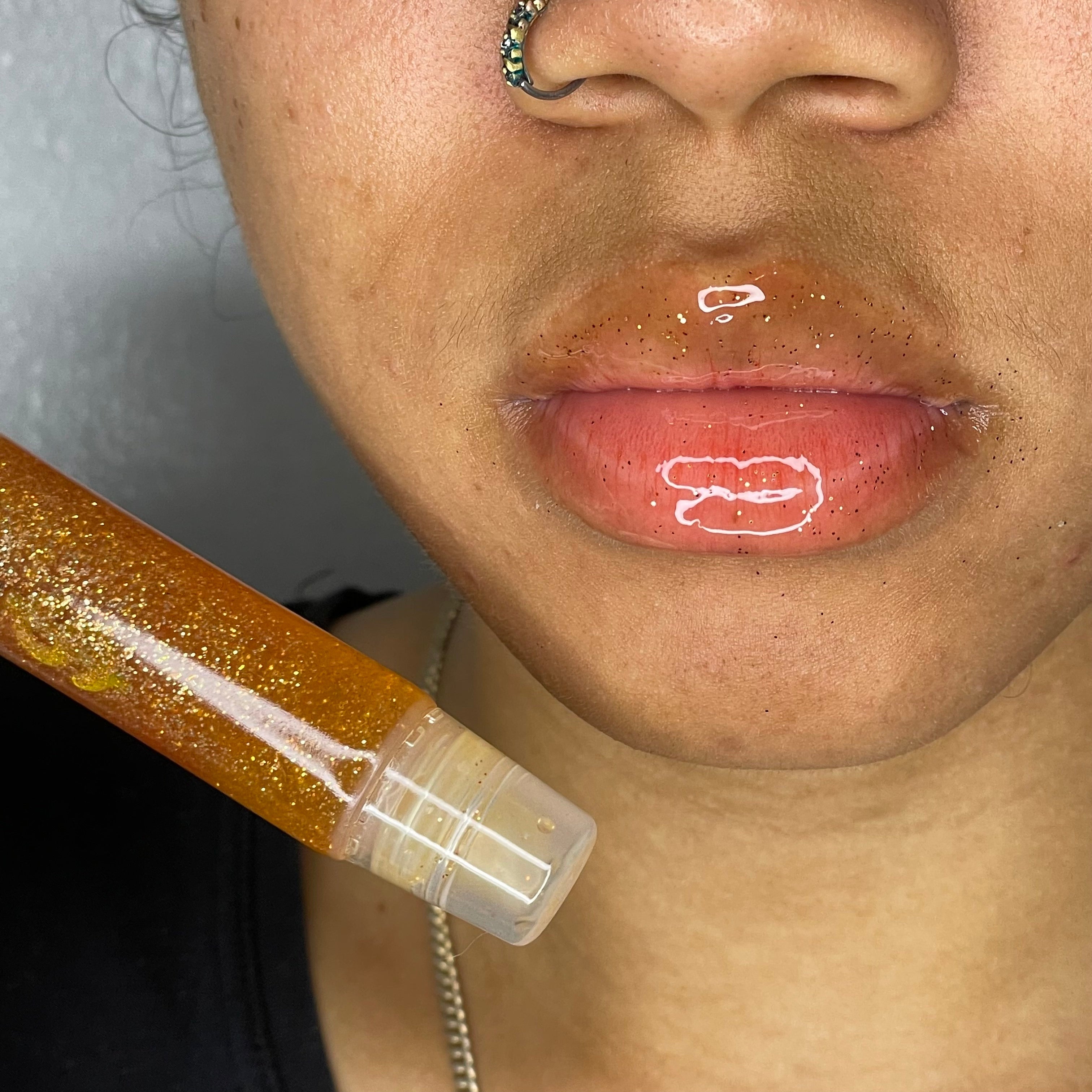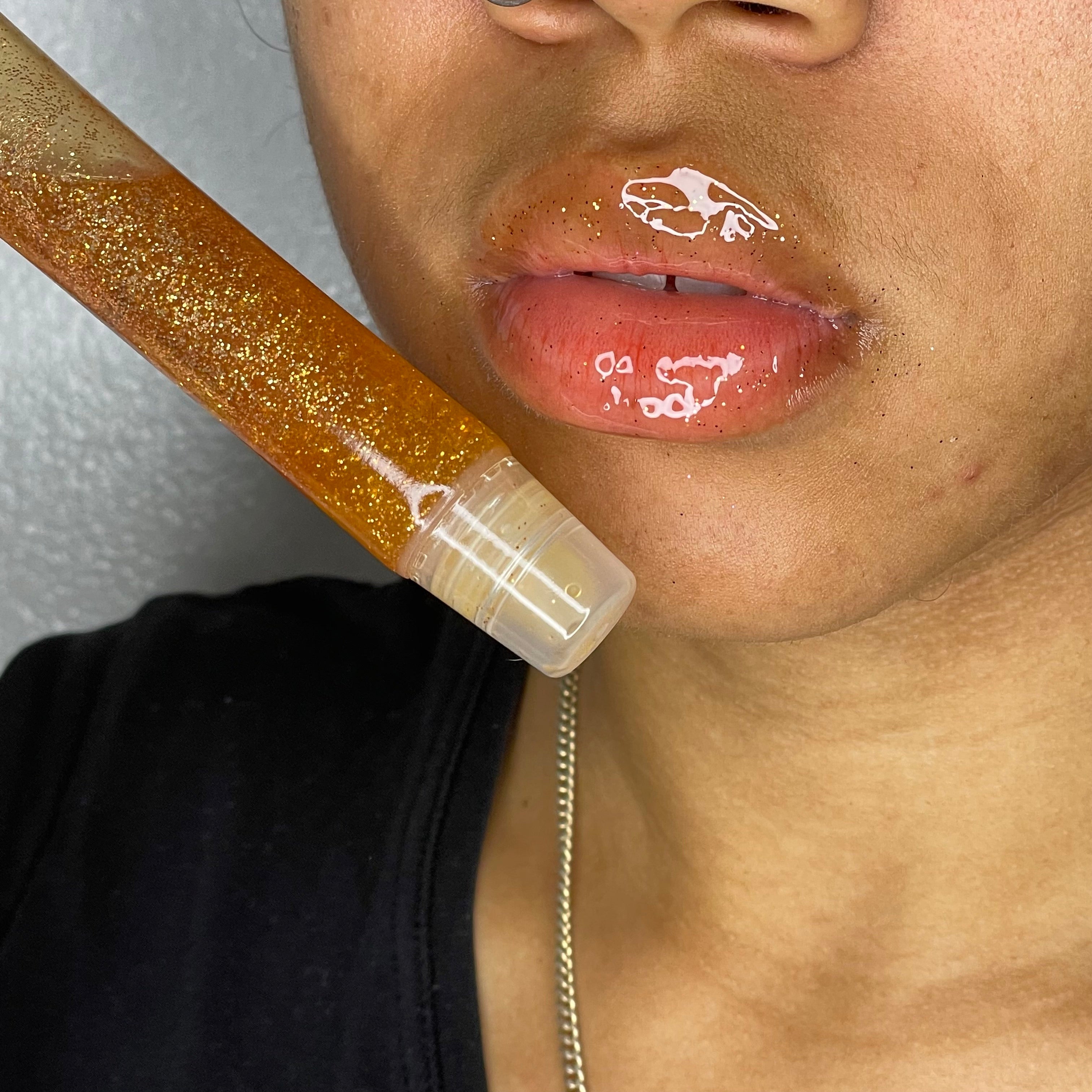 Gives your lips a shiny or glossy texture with out the mess. All our glosses comes with different flavors that smells good to eat but don't lol . They are made with pure oils and are a great toper for your fav lipstick.